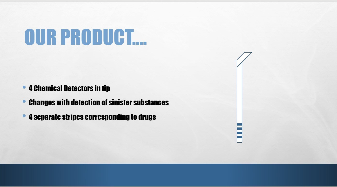 My group consisted of me, Alex Kenney, Daisy Sherrat, Luke O’Sullivan, Amy Hall and Fran Mckenzie-orr and our product was to be a straw which contained at its tip several bands of chemical receptors capable of detecting the presence of different ‘date-rape’ drugs in the user’s drink.